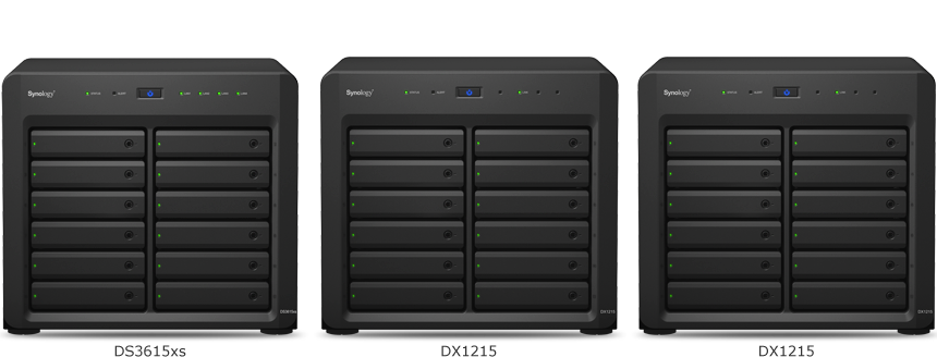 擁有 12 個硬盤托盤的 DS3615xs,通過連接至兩臺 DX1215 擴充設(shè)備2,總?cè)萘靠蓴U充至最多 216TB3,并能快速將單一存儲空間的容量實時擴充至 108TB。當存儲空間接近上限時,DS3615xs 可輕松擴充至多達 36 顆一般硬盤或 SSD 硬盤,提供靈活擴充的容量及均衡的效能,能符合不同應(yīng)用程序及程序的需求。