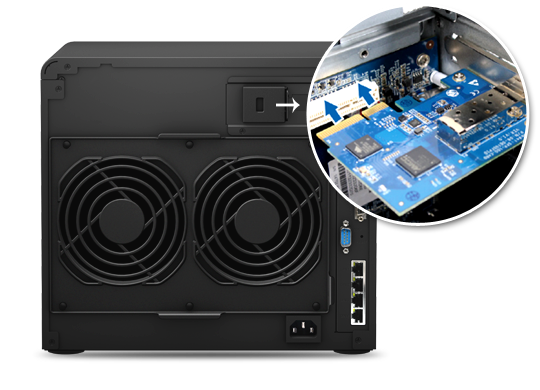 除了內(nèi)建的四個 Gigabit 網(wǎng)絡(luò)埠之外,DS3615xs 內(nèi)建一個 PCI Express 3.0 x8 插槽來安裝 10GbE 的網(wǎng)絡(luò)適配器 (NIC),藉以提升網(wǎng)絡(luò)聯(lián)機帶寬,為你存儲系統(tǒng)上需要處理大量數(shù)據(jù)的應(yīng)用程序提供優(yōu)越效能。此外,DS3615xs 內(nèi)建每秒 6Gb SATA III 介面支持,可將 SSD 的高速傳輸效能完整發(fā)揮,確保系統(tǒng)處理多項任務(wù)時,仍維持良好的傳輸效率。