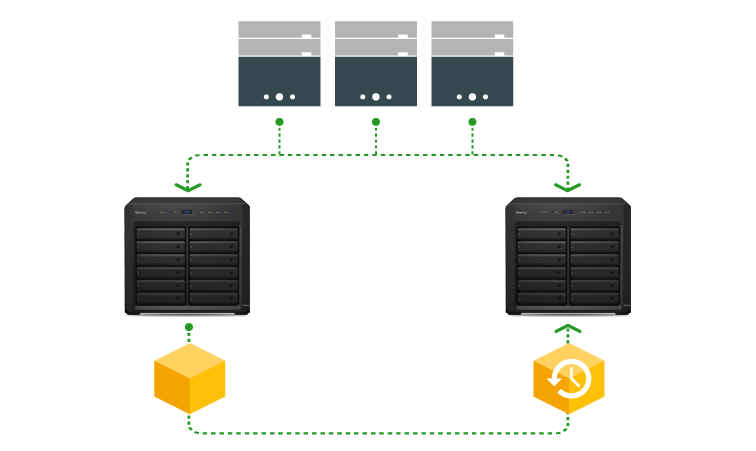 對于所有企業(yè)而言,提供不中斷的服務(wù)是非常重要的目標。DS3615xs 提供 Synology High Availability (SHA) 技術(shù),其連接了主動與被動服務(wù)器,前者的所有數(shù)據(jù)皆鏡射至后者,當主動服務(wù)器出現(xiàn)錯誤時,被動服務(wù)器馬上取而代之。共享文件夾同步可將數(shù)據(jù)實時復(fù)制至另一臺遠程的 Synology NAS,在復(fù)原時間目標 (Recovery Time Objective, RTO) 內(nèi)回復(fù)企業(yè)因服務(wù)器故障而中斷的服務(wù)。此外,通過多網(wǎng)絡(luò)端口鏈接,DS3615xs 在單一網(wǎng)絡(luò)功能異常時,也能提供備援機制。