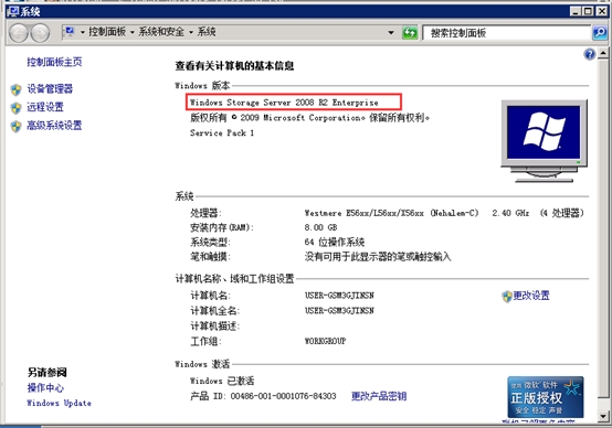 13. 我的電腦右鍵點(diǎn)擊屬性,發(fā)現(xiàn)系統(tǒng)已變成Windows Storage Server 2008 R2,成功將Windows Server 2008 R2轉(zhuǎn)換。