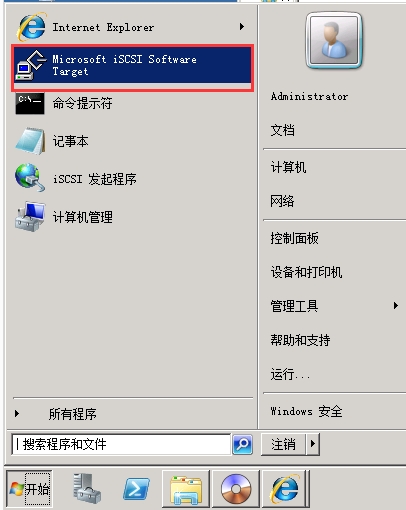 1. 點(diǎn)擊開始,找到Microsoft iSCSI Software Target,并打開