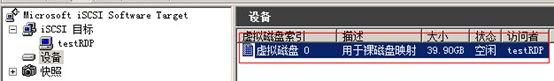 11. 在iSCSI目標(biāo)欄出現(xiàn)testRDP目標(biāo)